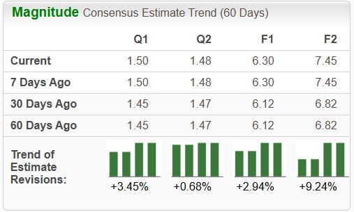 Investor-favorite and Zacks Rank #2 (Buy) Nvidia continues to fire on all cylinders, with its Data Center results regularly blowing away expectations and posting big year-over-year growth. Like those above, its earnings outlook has brightened nicely over recent months, with positive revisions regularly hitting the tape following quarterly prints.