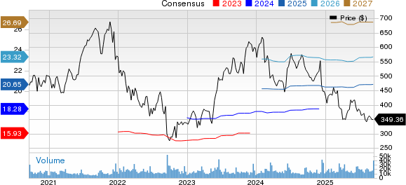 For fiscal 2025, the Zacks Consensus Estimate for revenues is currently pegged at $23.56 billion, suggesting 9.56% growth from 2024’s reported figure. The Zacks Consensus Estimate for earnings is pegged at $20.65 per share, up a couple of cents per share over the past 30 days. The figure indicates 12.1% growth from fiscal 2024’s reported figure.