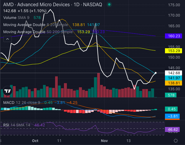 Also, AMD stock is trading well under its 200-day SMA of $160.23, signaling long-term bearish pressure.