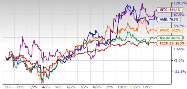 NVIDIA is benefiting from the strong growth of its newer Hopper and Blackwell GPU platforms.  Broadcom is benefiting from strong demand for its networking products and custom AI accelerators. Intel is undertaking various strategic decisions to gain a firmer footing in the expansive AI sector. Capital infusion by Softbank, NVIDIA and direct funding from the U.S. Department of Commerce are likely to pave the way for innovation and growth.