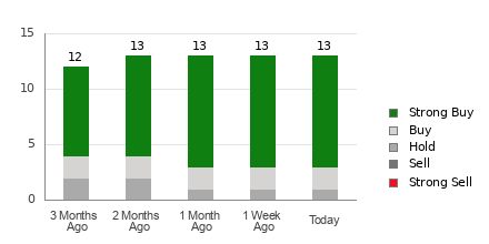 Of the 13 recommendations that derive the current ABR, 10 are Strong Buy and two are Buy. Strong Buy and Buy respectively account for 76.9% and 15.4% of all recommendations.
