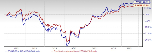 Shares of Broadcom have returned 20.9% year to date compared with the Zacks Electronics – Semiconductors industry’s growth of 15.6%.