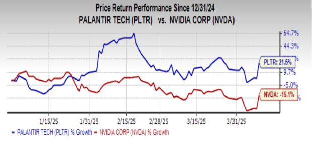 The advent of artificial intelligence (AI) has made semiconductor behemoth NVIDIA Corporation NVDA and data-mining specialist Palantir Technologies Inc. PLTR Wall Street darlings, with their shares witnessing massive gains. But this year, NVIDIA’s shares have fallen 15.1%, while Palantir’s shares have gained 21.5% amid Trump tariff woes. Does this mean Palantir has more growth potential and investment appeal? Let’s explore –