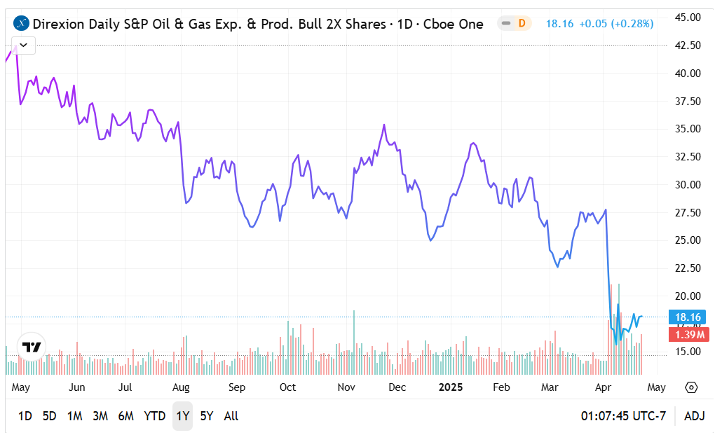 The GUSH ETF: Predictably, Direxion’s leveraged bull fund has gotten off to a poor start this year, losing nearly 35% of market value.