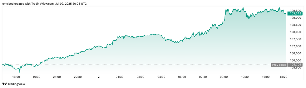 Bitcoin price performance, July 2, 2025.
