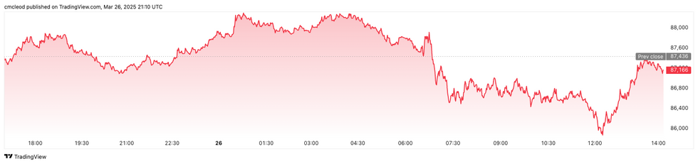 Bitcoin performance, March 26, 2025.