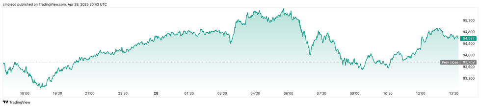 Bitcoin (BTC) was priced at US$94,867.28 as markets closed for the day, up 0.4 percent in 24 hours. The day’s range has seen a low of US$93,589.07 and a high of US$95,212.29.