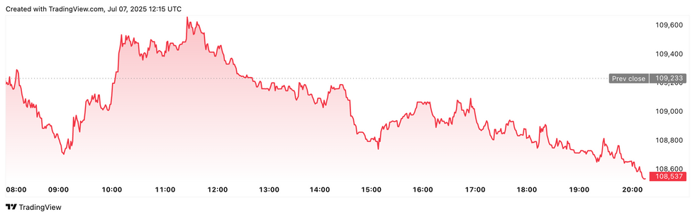 Bitcoin hovered near US$109,000 at the start of the day as investors shifted from equities to crypto in response to tariff-related uncertainty under President Trump.