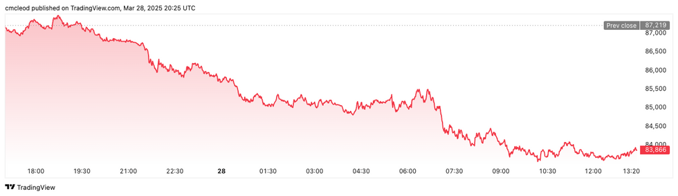 Bitcoin performance, March 28, 2025.