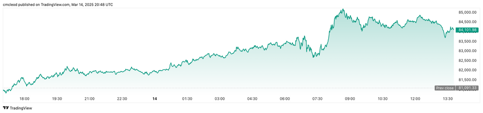 Bitcoin performance, March 14, 2025.