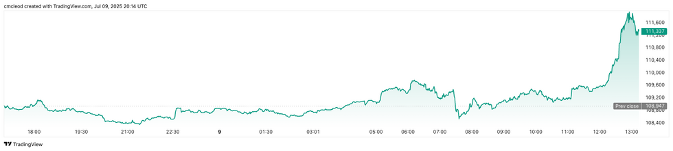 Bitcoin’s (BTC) price peaked at US$111,744 as the market wrapped, a 2.7 percent increase in the last 24 hours. The day’s range for the cryptocurrency also brought a low of US$108,644.