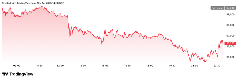 Bitcoin price performance, November 14, 2025.