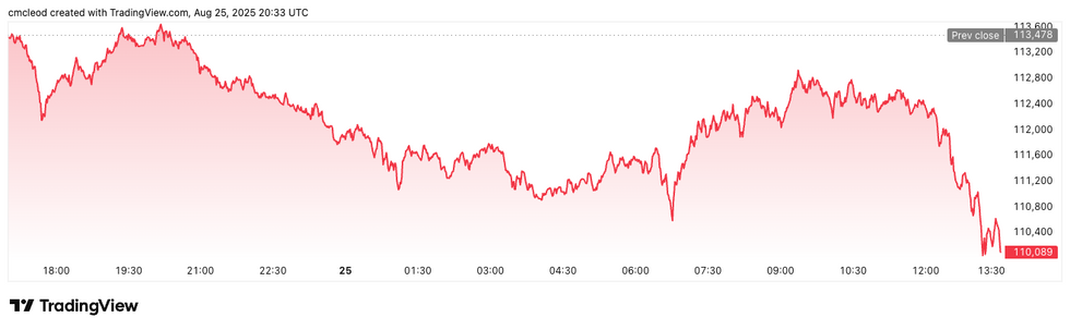 Monday’s price activity came after a Sunday (August 24) flash crash that was triggered by a 24,000 BTC sale. Losses extended to the broader crypto market, which closed down 3.8 percent Monday afternoon.