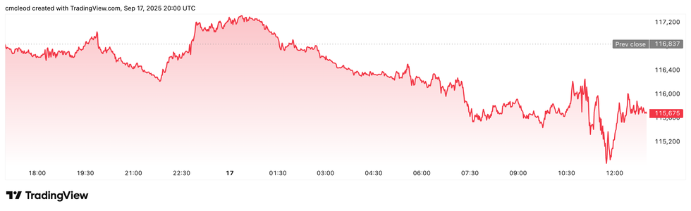 Bitcoin (BTC) was priced at US$115,680, a 1 percent decrease in 24 hours. Its lowest valuation of the day was US$114,940, and its highest was US$116,225.
