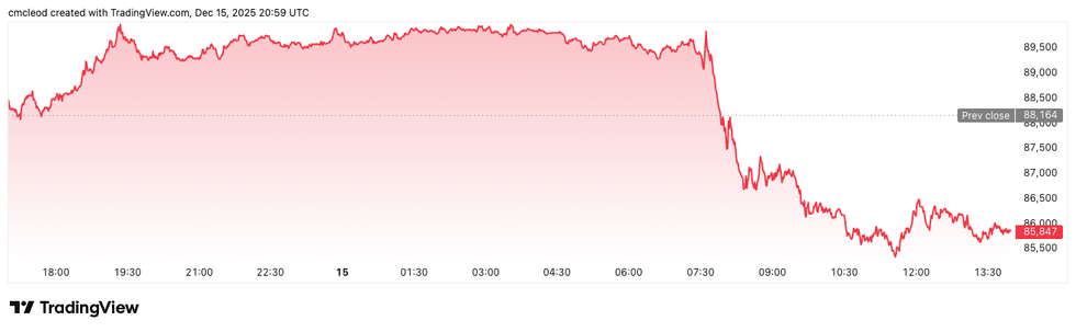 Bitcoin fell to lows around US$85,400, and the global crypto market cap saw a 24 hour decrease of 3.2 percent.