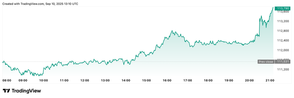 Bitcoin (BTC) was priced at US$113,654, a 0.9 percent increase in 24 hours and its highest valuation of the day so far. Its lowest was US$110,822.