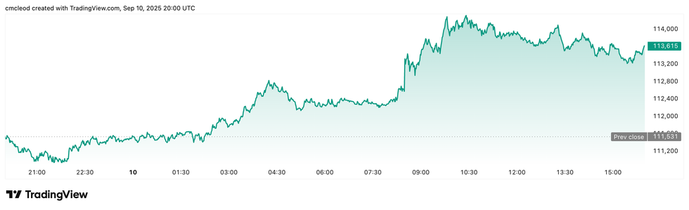 Bitcoin broke through US$114,000 on Wednesday after US producer price index numbers for August came in lower than expected, thanks to a decline in the cost of services.
