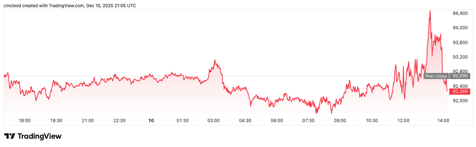 The Bitcoin price reclaimed US$92,000 ahead of Wednesday’s US Federal Reserve meeting, with traders pricing in an interest rate cut, but holding back without signals of extended easing into 2026.