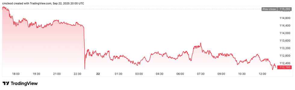 Bitcoin price performance, September 22, 2025.