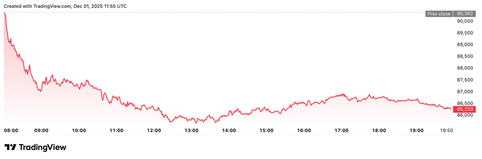 Bitcoin price performance, December 1, 2025.