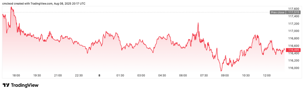 Bitcoin price performance, August 8, 2025.