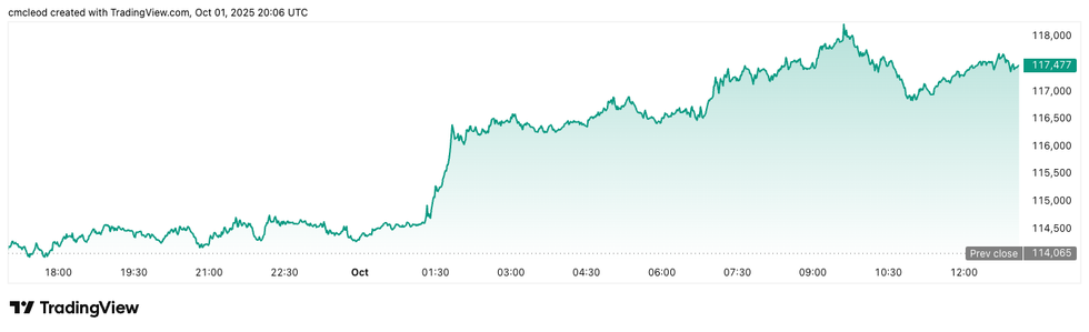 Bitcoin hit a two week high after Wall Street’s open on Wednesday as investors sought alternative safe-haven assets like crypto and gold amid a US government shutdown. Meanwhile, weak US jobs data reinforced optimism about another Federal Reserve interest rate cut later this month, further supporting risk assets.