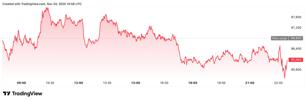 Bitcoin (BTC) was priced at US$86,884.76, down by 1 percent over 24 hours. Its lowest price of the day was US$85,545.99, and its highest was US$87,995.12.