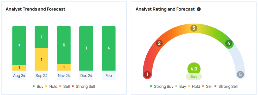 Benzinga tracks 20 analysts with an average price target of $134.05 for the stock, reflecting a “buy” rating. Estimates range widely from $53 to $185. Recent ratings from Northland Citigroup, B of A Securities, and Morgan Stanley average $141, suggesting a potential 32.39% upside.