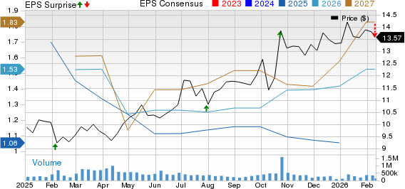 U.S. legacy automaker Ford F ended 2025 on a weak note, snapping its four-quarter earnings beat streak. The company posted sharply disappointing fourth-quarter 2025 results, incurring a net loss of $11.1 billion on a GAAP basis versus a profit of $1.8 billion in the corresponding quarter of 2024. On a non-GAAP basis, EPS came in at 13 cents, missing the Zacks Consensus Estimate of 17 cents and declining 26% year over year.