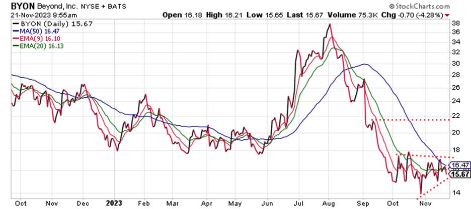 On November 21, I instructed readers to place a bullish trade on Beyond.