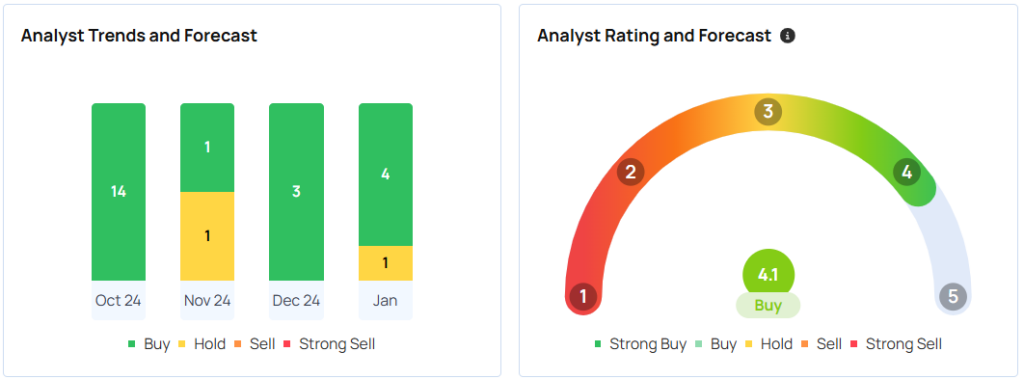 Visa has a consensus ‘buy’ with a price target of $324.06, according to the 34 analysts tracked by Benzinga. The high target is $375, and the low is $252. Recent ratings by Piper Sandler, BofA Securities, and Citigroup suggest a $523 target, implying a 1.14% upside.