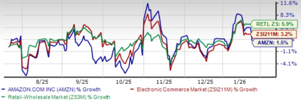 The Zacks Consensus Estimate for fiscal 2026 Amazon’s international revenues is pegged at $160.51 billion, up 12.31% year over year. As emerging markets contribute meaningfully to this outlook amid strengthening structural tailwinds, Amazon appears well-positioned to benefit from geographic expansion as a durable growth catalyst.