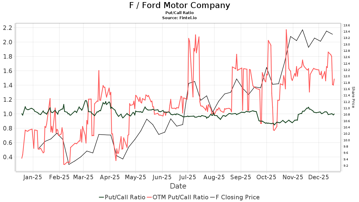 The put/call ratio of F is 1.00, indicating a bullish outlook.