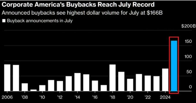 Notably, the latest data on insider selling and corporate buybacks makes this disconnect very clear. In July, S&P 500 companies announced $166 billion in buybacks, the largest July on record.
