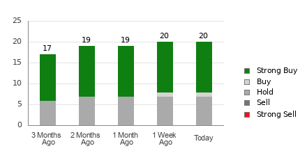 Cava currently has an average brokerage recommendation (ABR) of 1.75, on a scale of 1 to 5 (Strong Buy to Strong Sell), calculated based on the actual recommendations (Buy, Hold, Sell, etc.) made by 20 brokerage firms. An ABR of 1.75 approximates between Strong Buy and Buy.