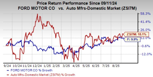 Over the past year, shares of Ford have gained around 10%, underperforming the industry. Meanwhile, Toyota is up 15% while Stellantis is down 41%, over the same timeframe.