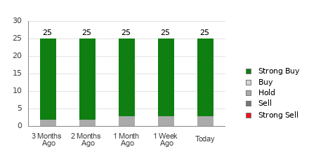 TJX currently has an average brokerage recommendation (ABR) of 1.24, on a scale of 1 to 5 (Strong Buy to Strong Sell), calculated based on the actual recommendations (Buy, Hold, Sell, etc.) made by 25 brokerage firms. An ABR of 1.24 approximates between Strong Buy and Buy.