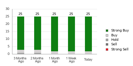 UnitedHealth currently has an average brokerage recommendation (ABR) of 1.06, on a scale of 1 to 5 (Strong Buy to Strong Sell), calculated based on the actual recommendations (Buy, Hold, Sell, etc.) made by 25 brokerage firms. An ABR of 1.06 approximates between Strong Buy and Buy.