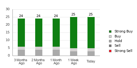 Take-Two currently has an average brokerage recommendation (ABR) of 1.32, on a scale of 1 to 5 (Strong Buy to Strong Sell), calculated based on the actual recommendations (Buy, Hold, Sell, etc.) made by 25 brokerage firms. An ABR of 1.32 approximates between Strong Buy and Buy.