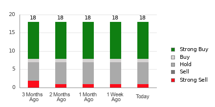 Toll Brothers currently has an average brokerage recommendation (ABR) of 1.94, on a scale of 1 to 5 (Strong Buy to Strong Sell), calculated based on the actual recommendations (Buy, Hold, Sell, etc.) made by 18 brokerage firms. An ABR of 1.94 approximates between Strong Buy and Buy.
