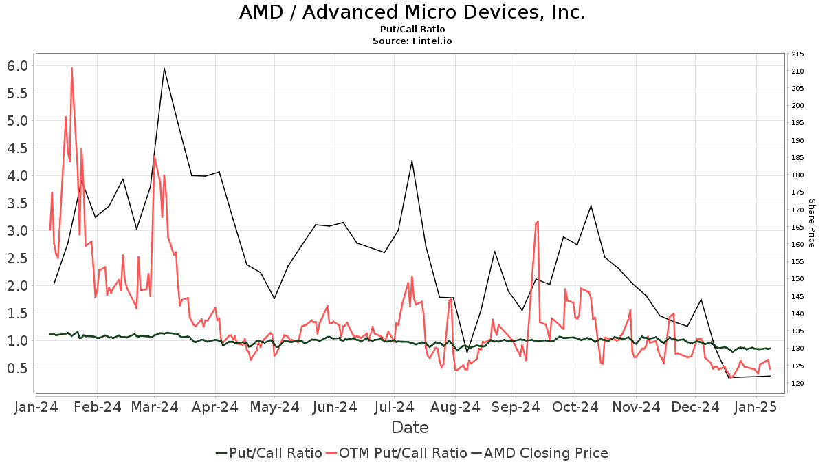 The put/call ratio of AMD is 0.83, indicating a bullish outlook.