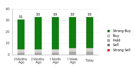 Of the 33 recommendations that derive the current ABR, 27 are Strong Buy and three are Buy. Strong Buy and Buy respectively account for 81.8% and 9.1% of all recommendations.