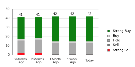Netflix currently has an average brokerage recommendation (ABR) of 1.68, on a scale of 1 to 5 (Strong Buy to Strong Sell), calculated based on the actual recommendations (Buy, Hold, Sell, etc.) made by 42 brokerage firms. An ABR of 1.68 approximates between Strong Buy and Buy.