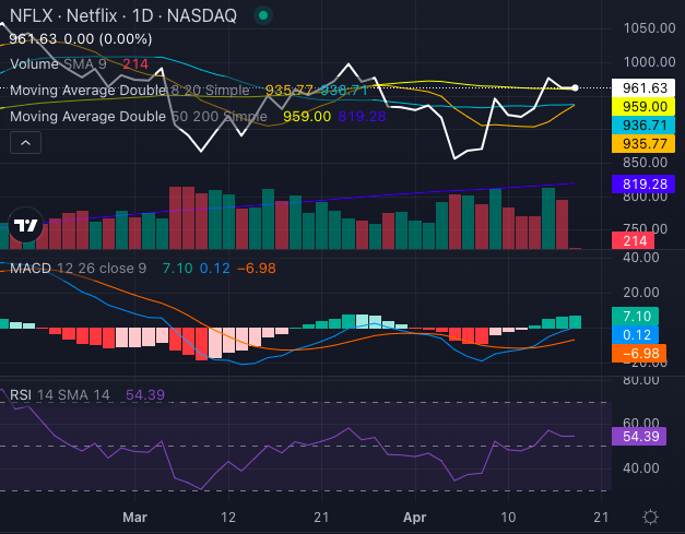 The technical chart above indicates that Netflix’s bullish momentum has staying power. The stock is above its eight, 20, 50 and 200-day simple moving averages, indicating bullish momentum. Oscillators are also bullish, with the MACD (moving average convergence/divergence) indicator at 0.12 and the RSI (relative strength index) at 54.39, implying that the stock is neither overbought nor oversold. So, the broader trend remains strongly bullish.