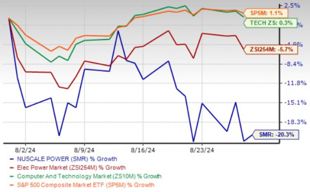 Over the past month, NuScale Power SMR shares have experienced a sharp 20.3% decline, significantly lagging behind the growth of the Zacks Computer & Technology sector and the Electronics – Power Generation industry.