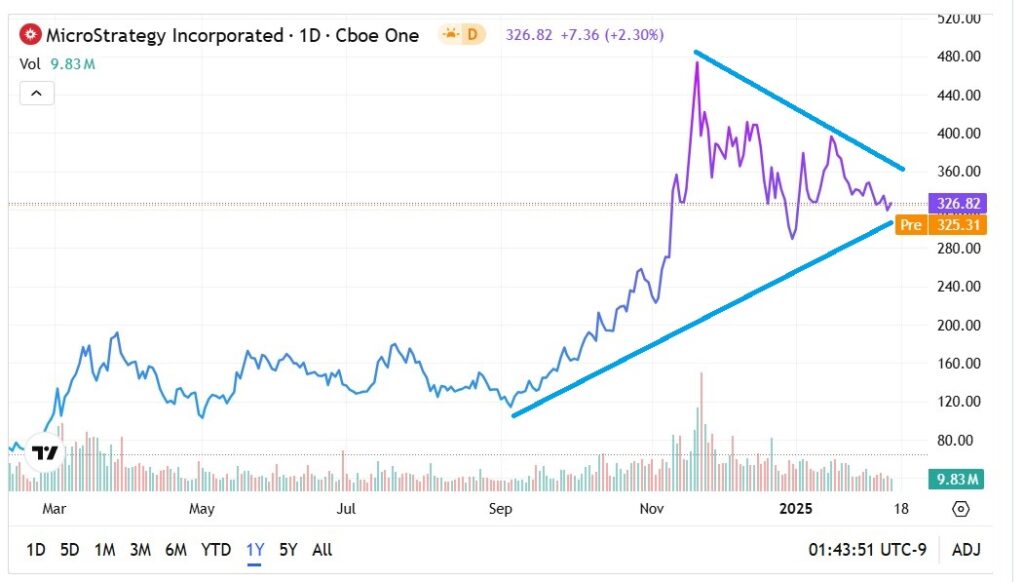 As the asset of choice among young people, MicroStrategy stands on solid ground. Interestingly, amid the optimistic fundamental backdrop, MSTR stock appears to be charting a buy signal. Specifically, a triangular shape has formed, reminiscent of a bullish pennant formation.