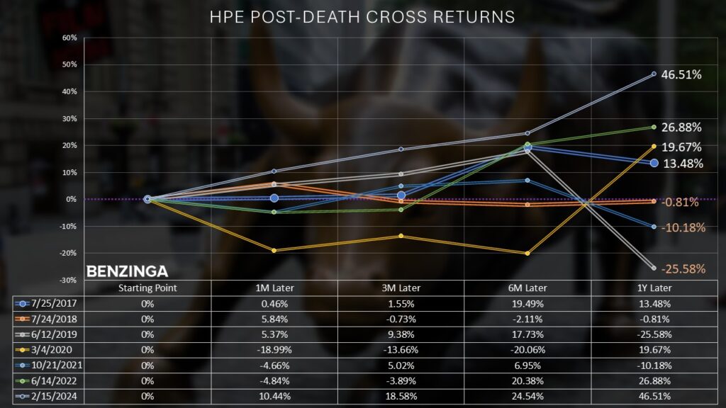 Just by the sound of it, shareholders of Hewlett Packard Enterprise Co. HPE should be shaking in fear: HPE stock recently printed the Death Cross in its price chart. Often regarded as a warning before a serious downturn or even a bear market, the pattern theoretically allows investors to exit or take protective measures with options-focused strategies.