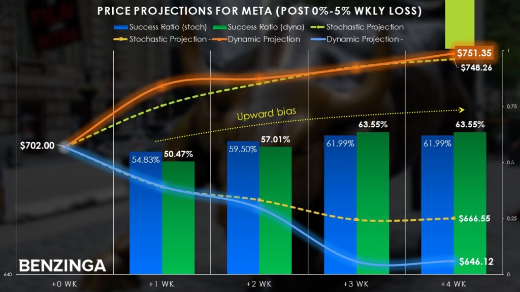 At the present juncture, Meta stock is on track to lose about 4.5% this week. Historically, when Meta loses up to 5% in a one-week period, the subsequent week only has about a 50/50 shot of rising. This circumstance may be due to investors digesting the volatility that just materialized. However, over the subsequent four weeks, the long odds rise to 63.55%.