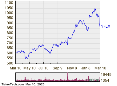 In trading on Monday, shares of Netflix Inc (Symbol: NFLX) entered into oversold territory, hitting an RSI reading of 29.0, after changing hands as low as $858.33 per share. By comparison, the current RSI reading of the S&P 500 ETF (SPY) is 30.4. A bullish investor could look at NFLX’s 29.0 RSI reading today as a sign that the recent heavy selling is in the process of exhausting itself, and begin to look for entry point opportunities on the buy side. The chart below shows the one year performance of NFLX shares: