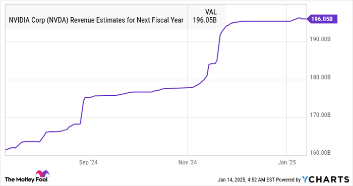 This explains why consensus estimates are projecting the company will generate almost $171 billion in data center revenue in its fiscal 2026 (which will begin toward the end of this month and include 11 months of calendar 2025). That would be a massive increase over the estimated data center GPU revenue of $97.6 billion from its fiscal 2025.